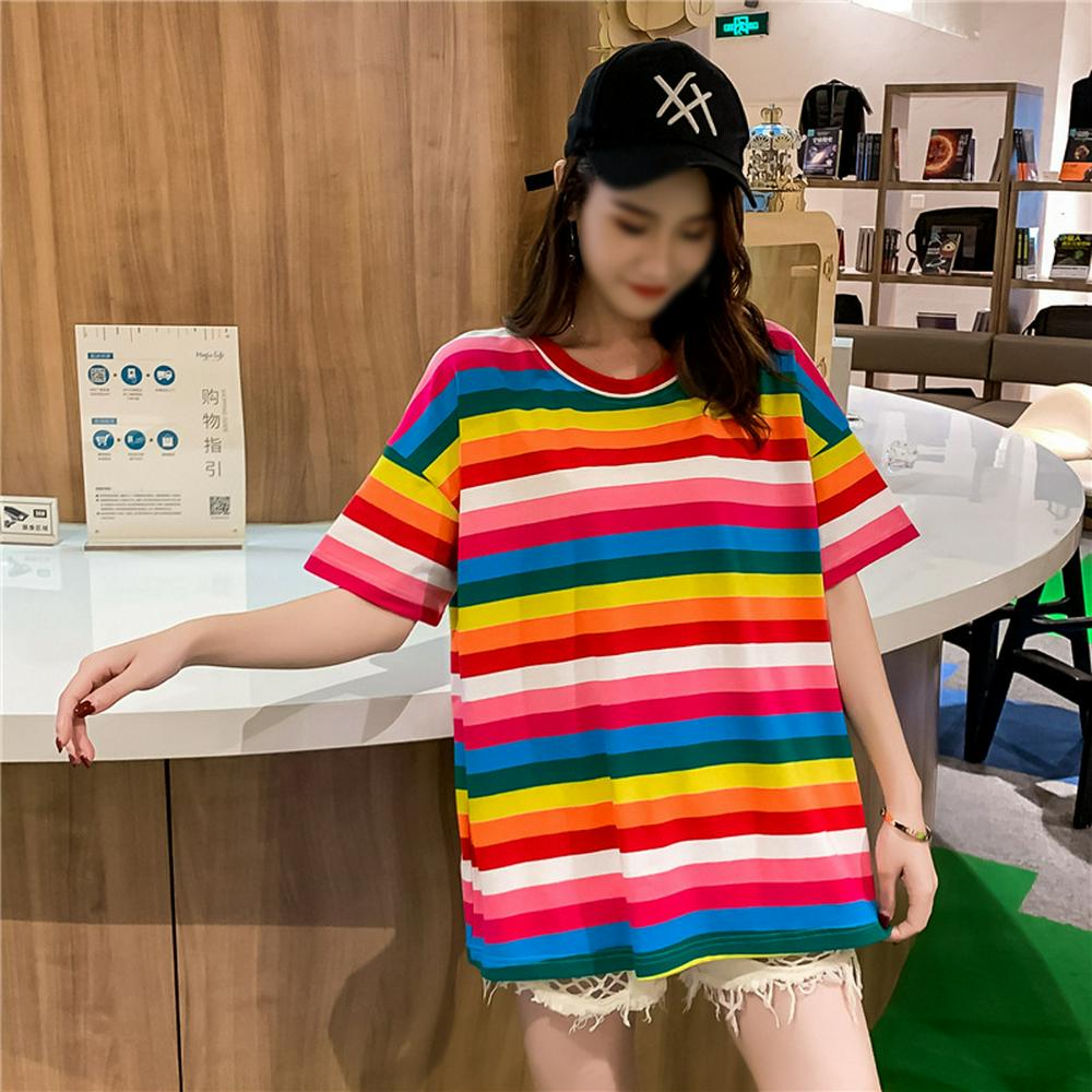 Women's Rainbow T-shirt Crew Neck Short Sleeve Loose Tee