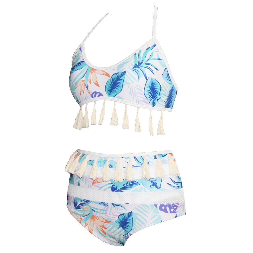 Women's Sexy Bikini Set Halterneck Top with Tassel High Waisted Top