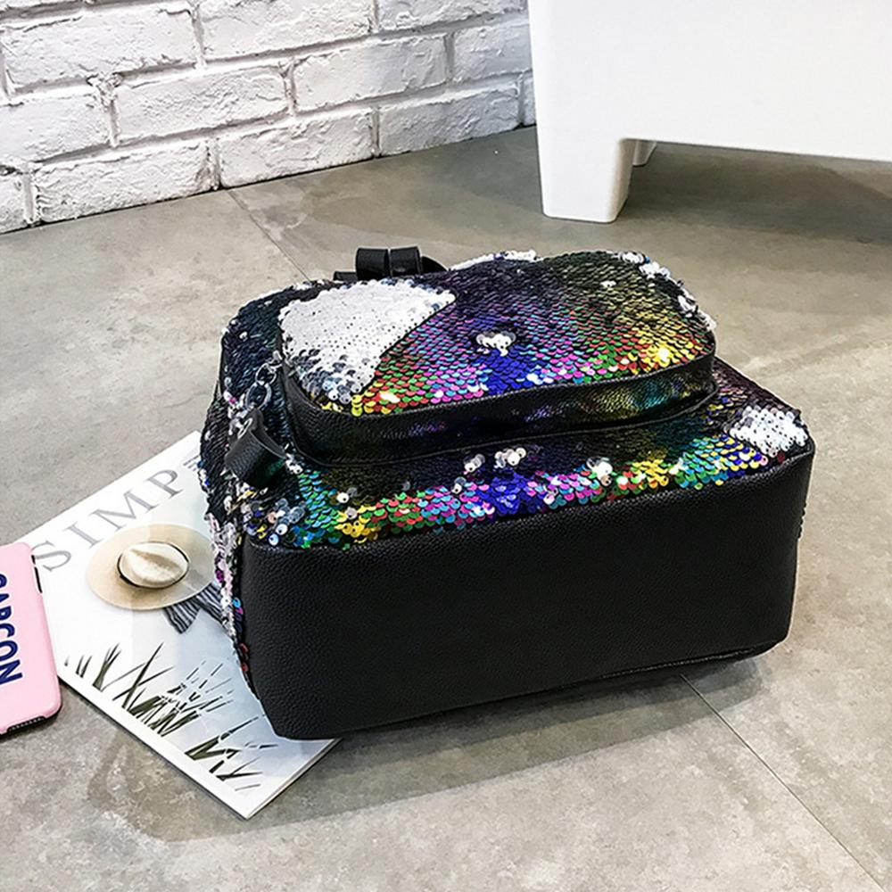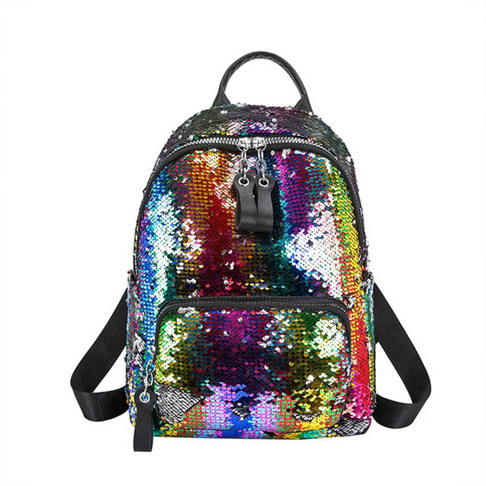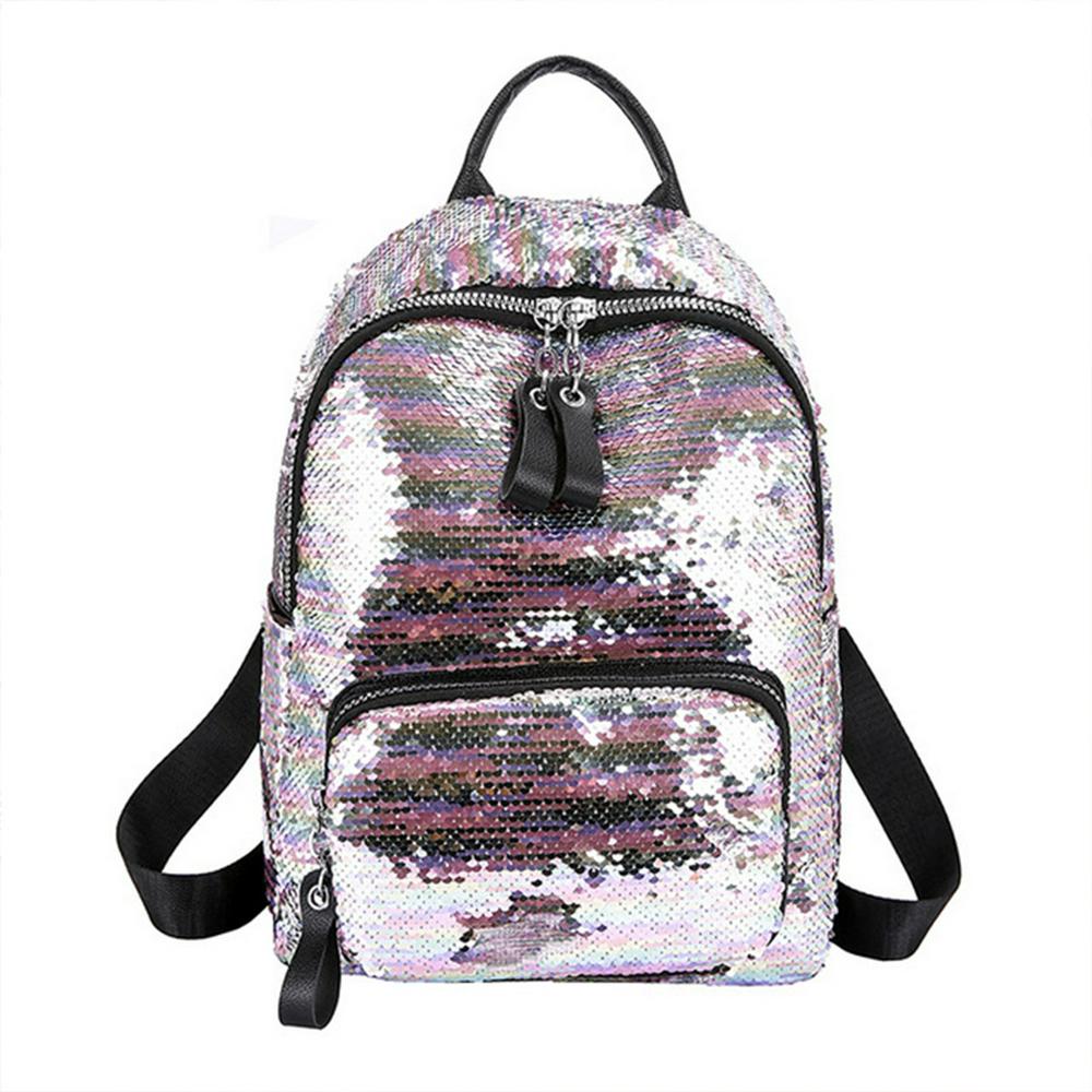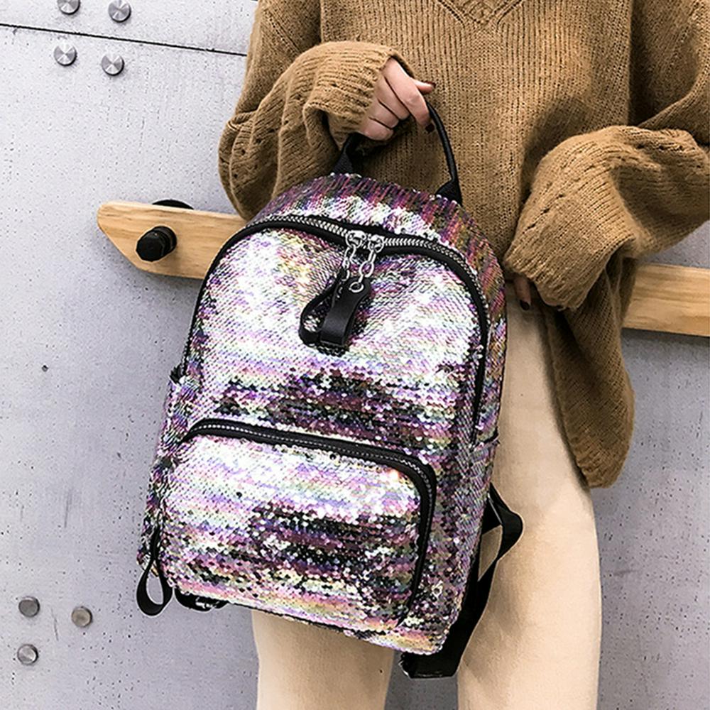 Women's Shiny Sequin Backpack Fashionable Travel Bag with Handle