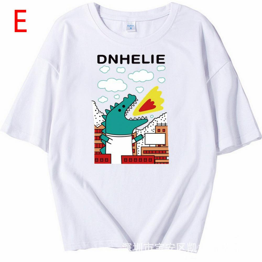 Women's Short-sleeve Crewneck Shirt Loose Front-printed Top - Design A