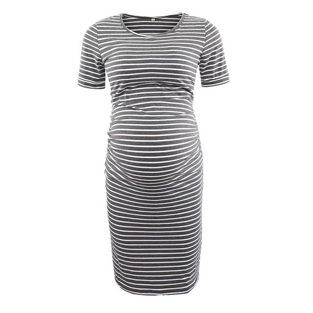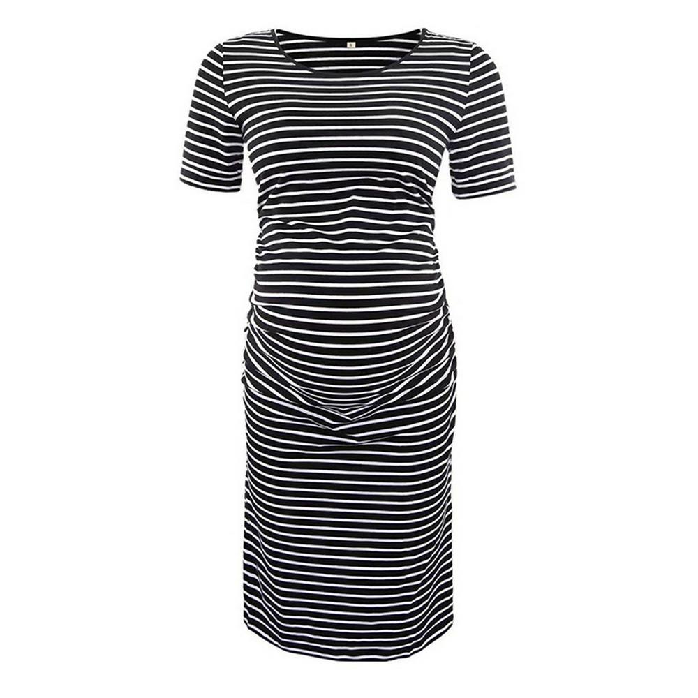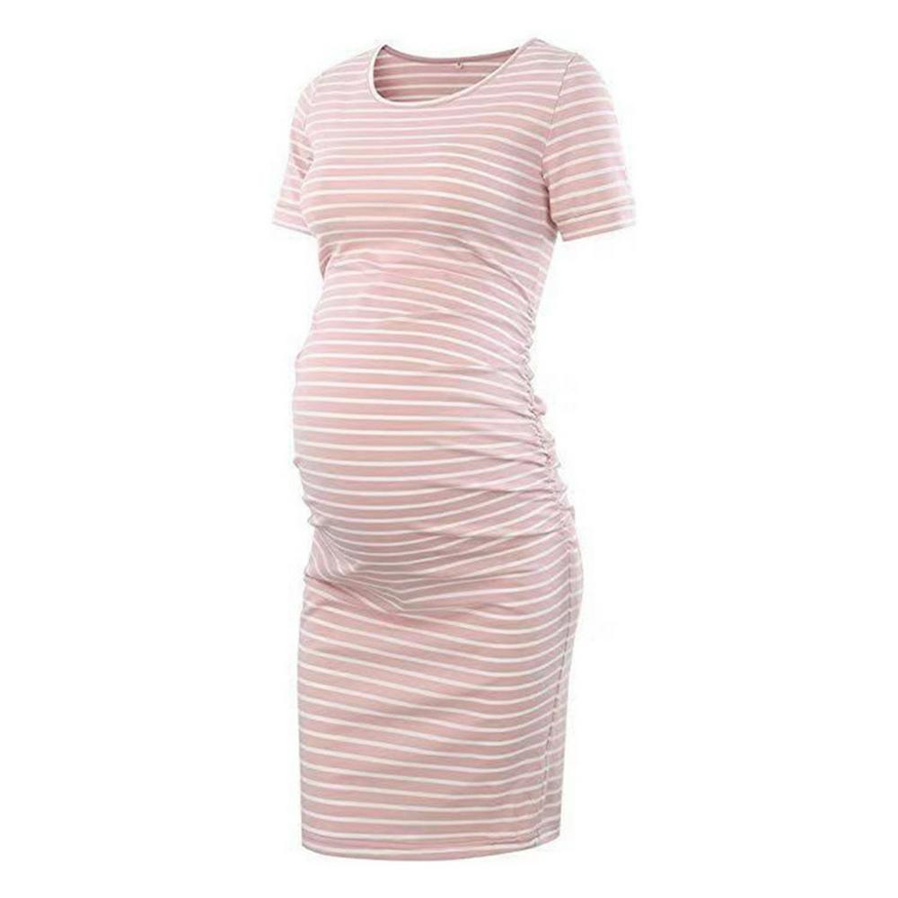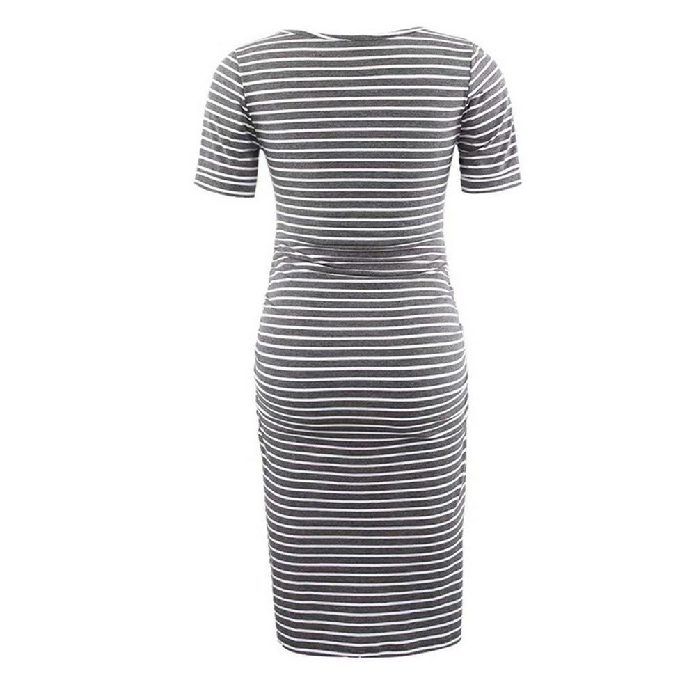Women's Striped Short Sleeved Maternity Dress Knee Length Dress