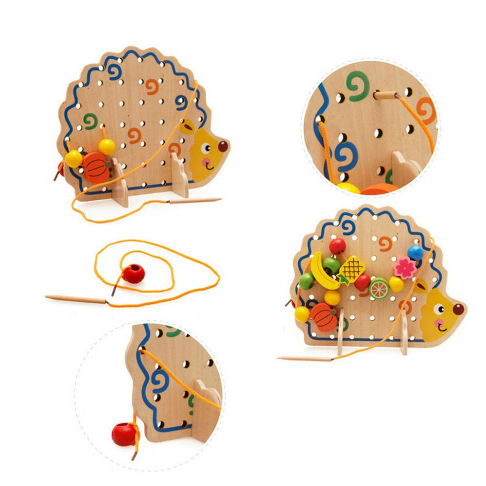 Wooden Hedgehog Fruit Beaded Bracelet Children Educational Early Learning Puzzle Childhood Bead-Stringing Toy for Kid Birthday Gifts