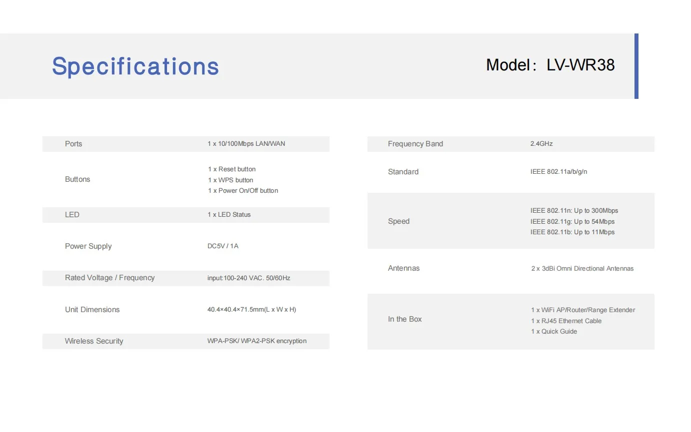 The LV-WR38’s single Ethernet port allows the Extender to function as a wireless adapter to connect