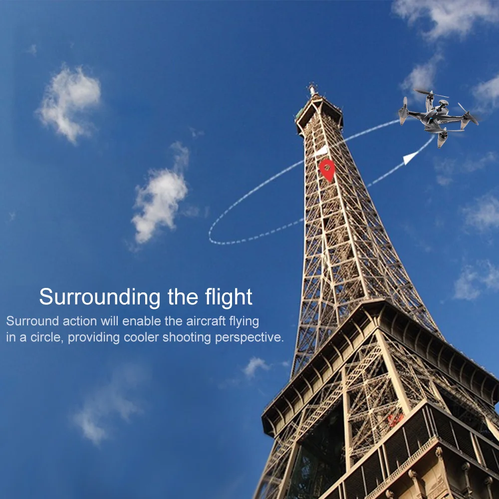 Surround action will enable the aircraft flying in a circle, providing cooler shooting perspective.