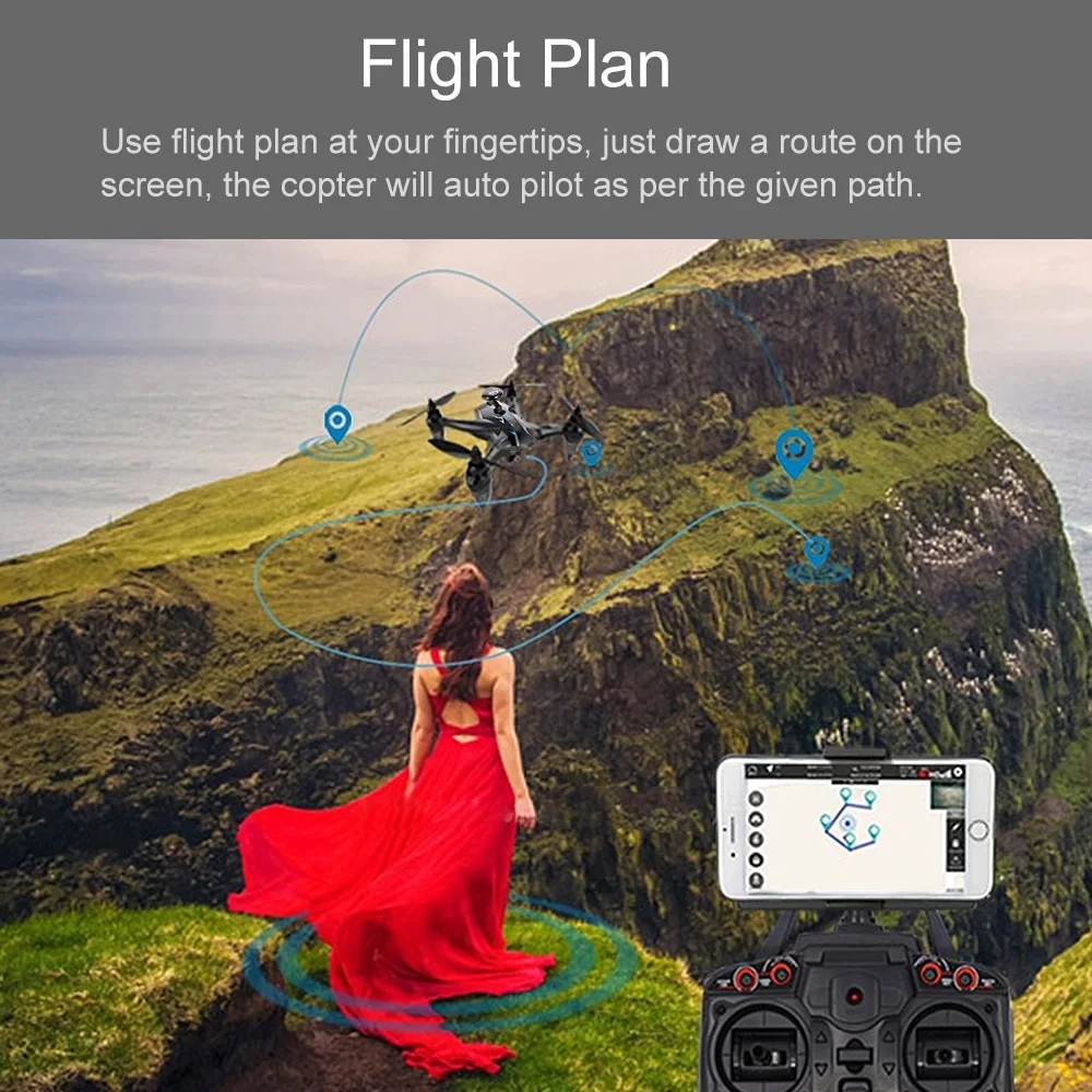 Use flight plan at your fingertips, just draw a route on the screen, the copter will auto pilot as per the given path.