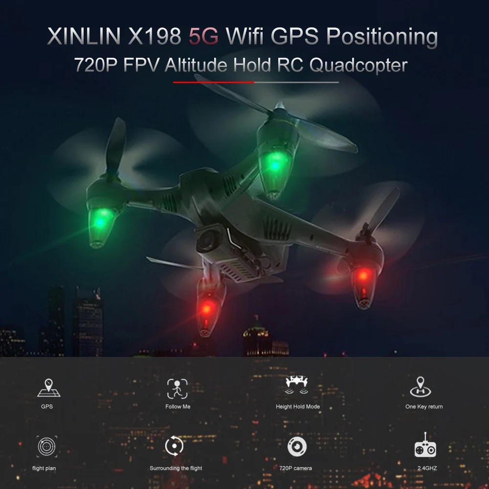 Functions: Sideward flight, turn left/right, up/down, forward/backward, altitude hold, one key take off/landing, follow me mode, WiFi FPV, G-sensor, headless mode, one key return
