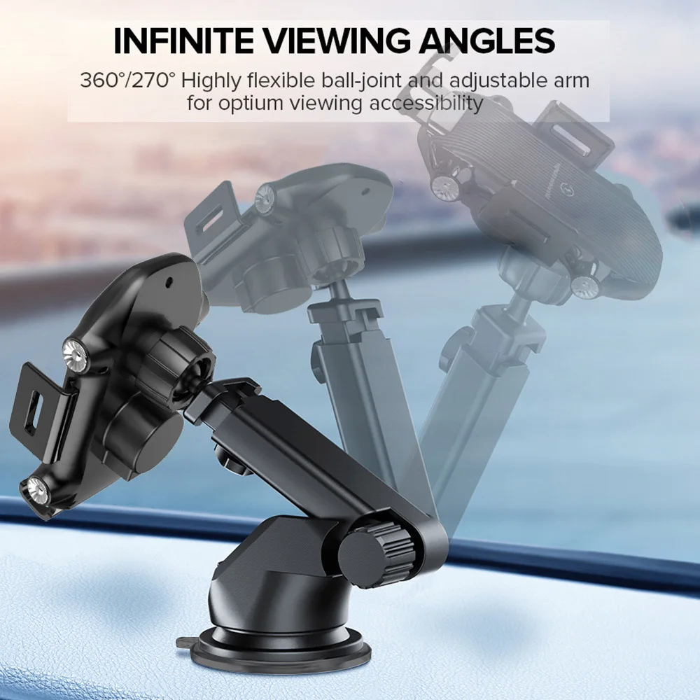 Wireless car mount charger comes with two bases (Air Vent & Dashboard Mount), which will hold phone securely in place and prevents falls even in braking, delay zone and bumpy road. ° Swivel joint and extendable arm ensure flexible viewing angles.