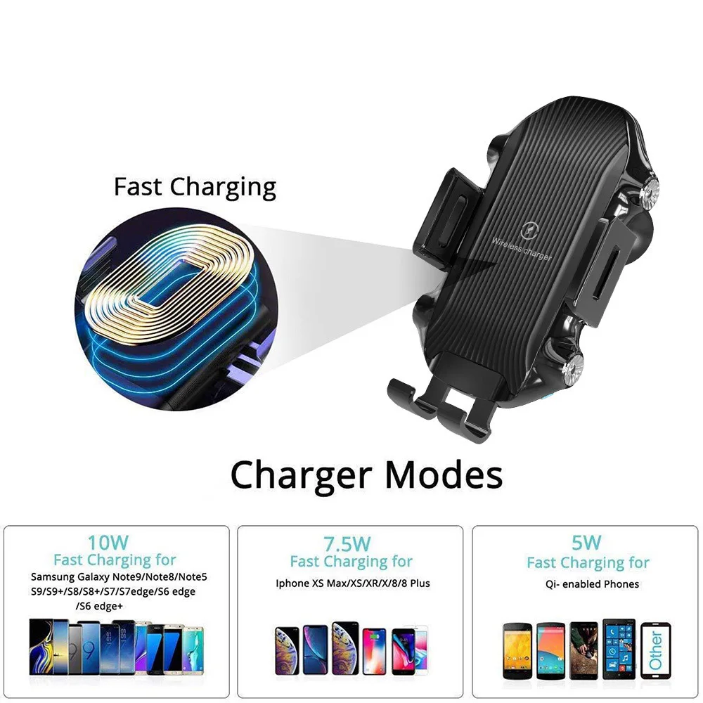 Qi fast wireless charger with improved charging coils makes it charge 50% faster than the regular wireless car charger. 10 W costs for Samsung Galaxy S10 / S10 +, S9 / 9 +, s8 / 8 +, Note9 and more, while 7.5 W costs for iPhone Xs Max / XR / Xs / X / 8 Plus / 8. Other Qi enabled phones will be charged in 5 W.