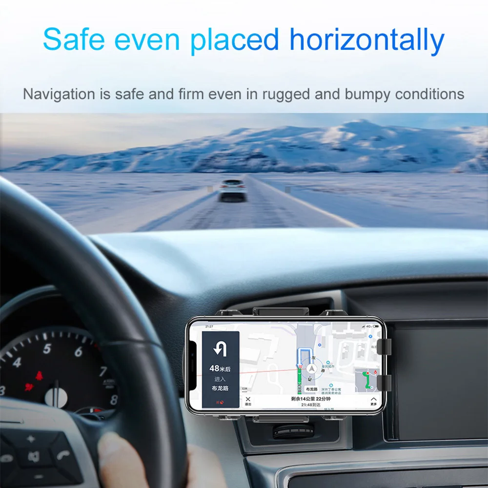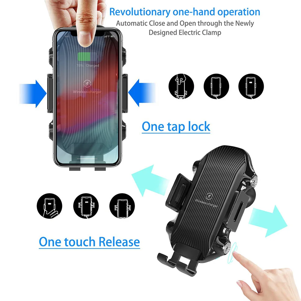 Wireless car mount charger adopts the latest touch sensitive control design. Just need to put the metal, the clamp automatically lock your phone for fast charging. To make your phone touch the metal again, the clamp will open automatically. Note: It only works when the auto power is on.