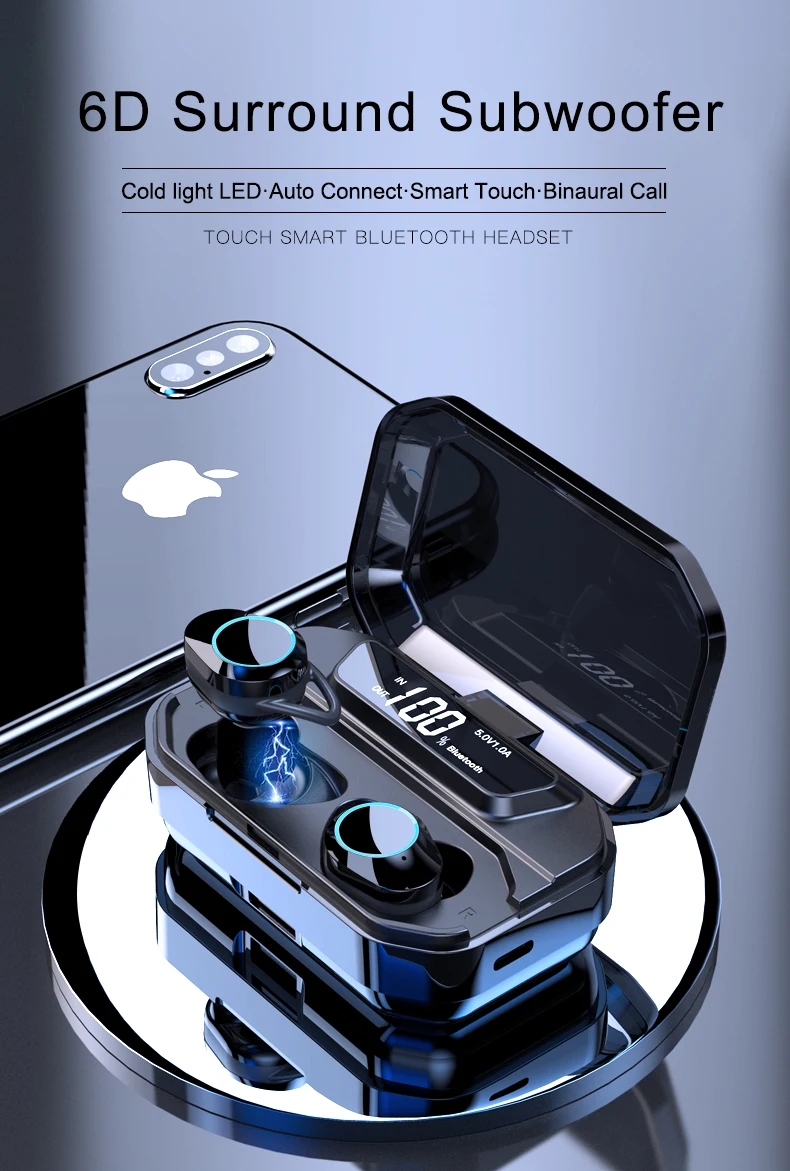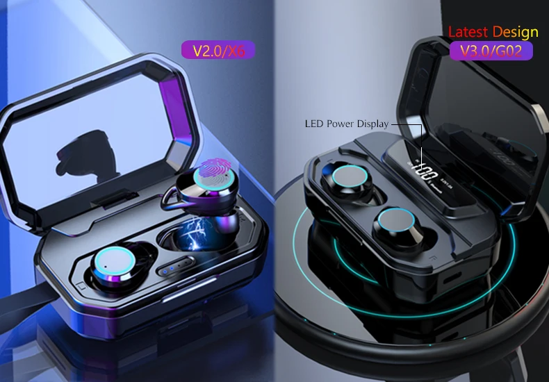X6 Waterproof TWS IPX7 Sports Headphones Upgrade Bluetooth Wireless Headset with Charger Box