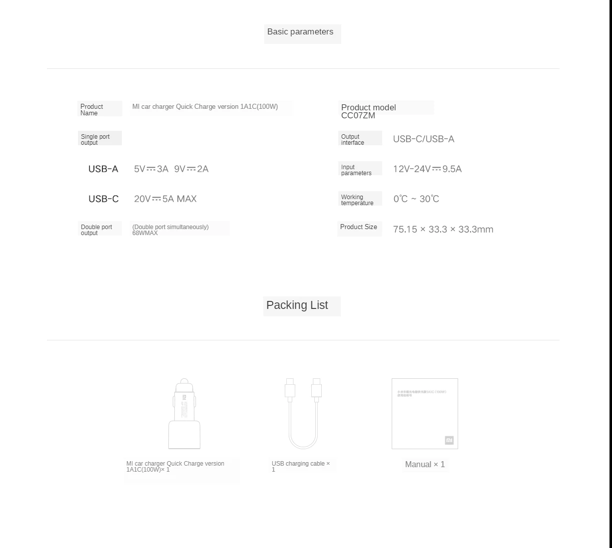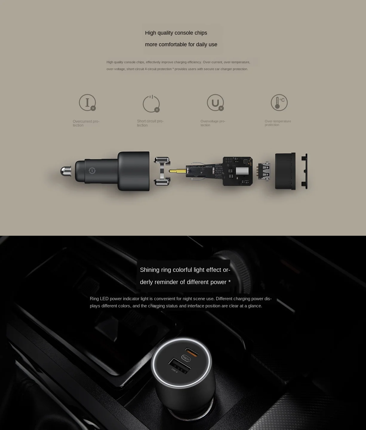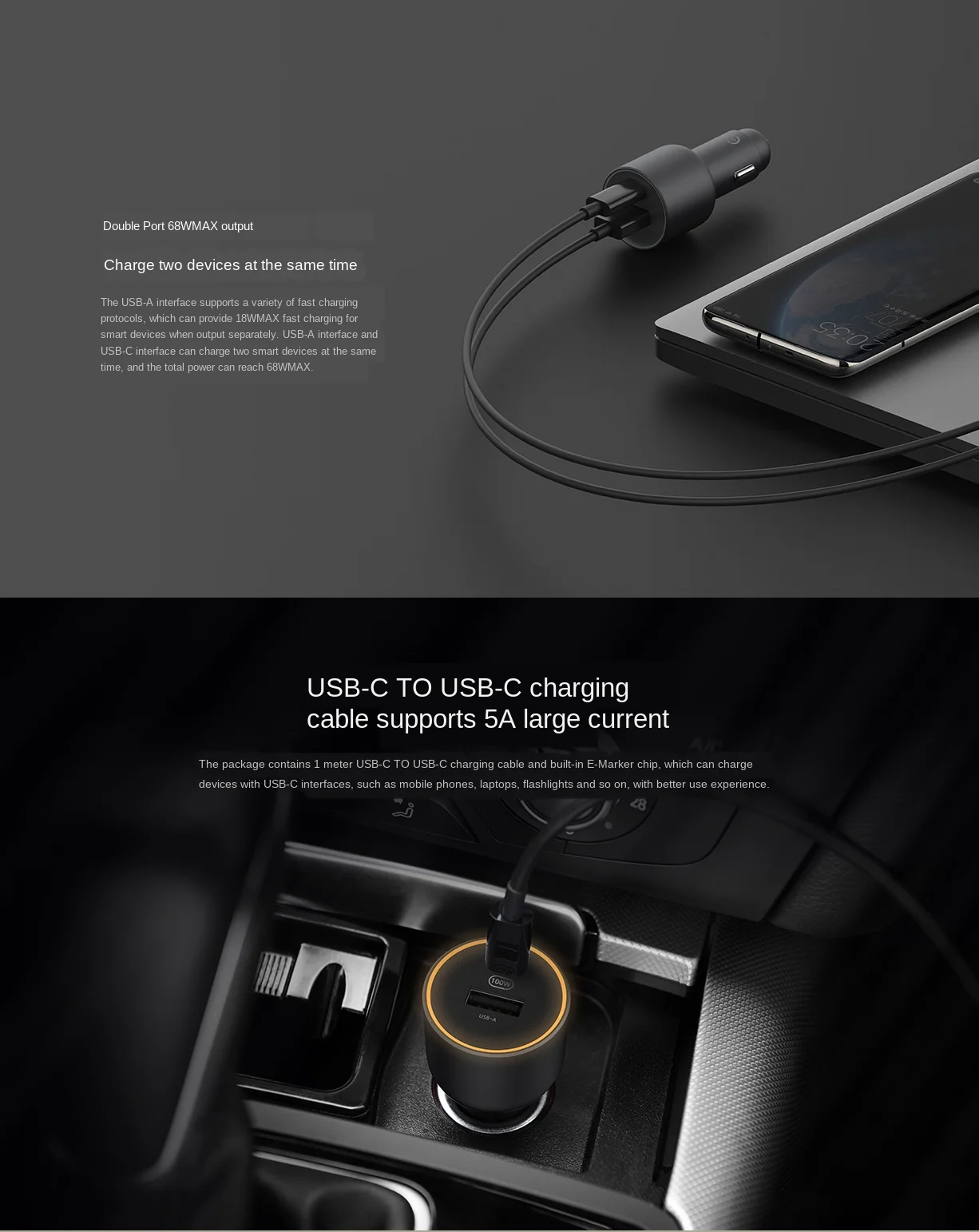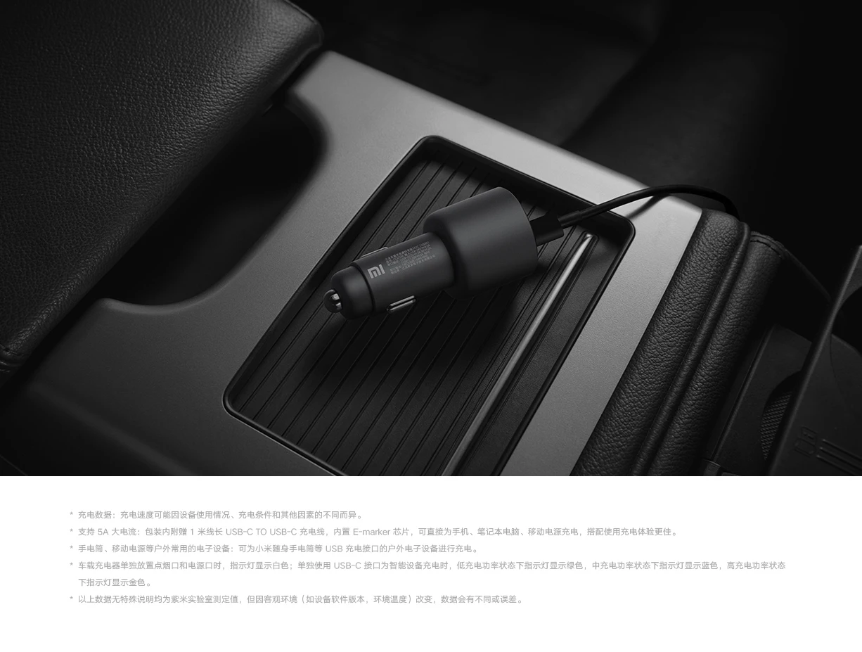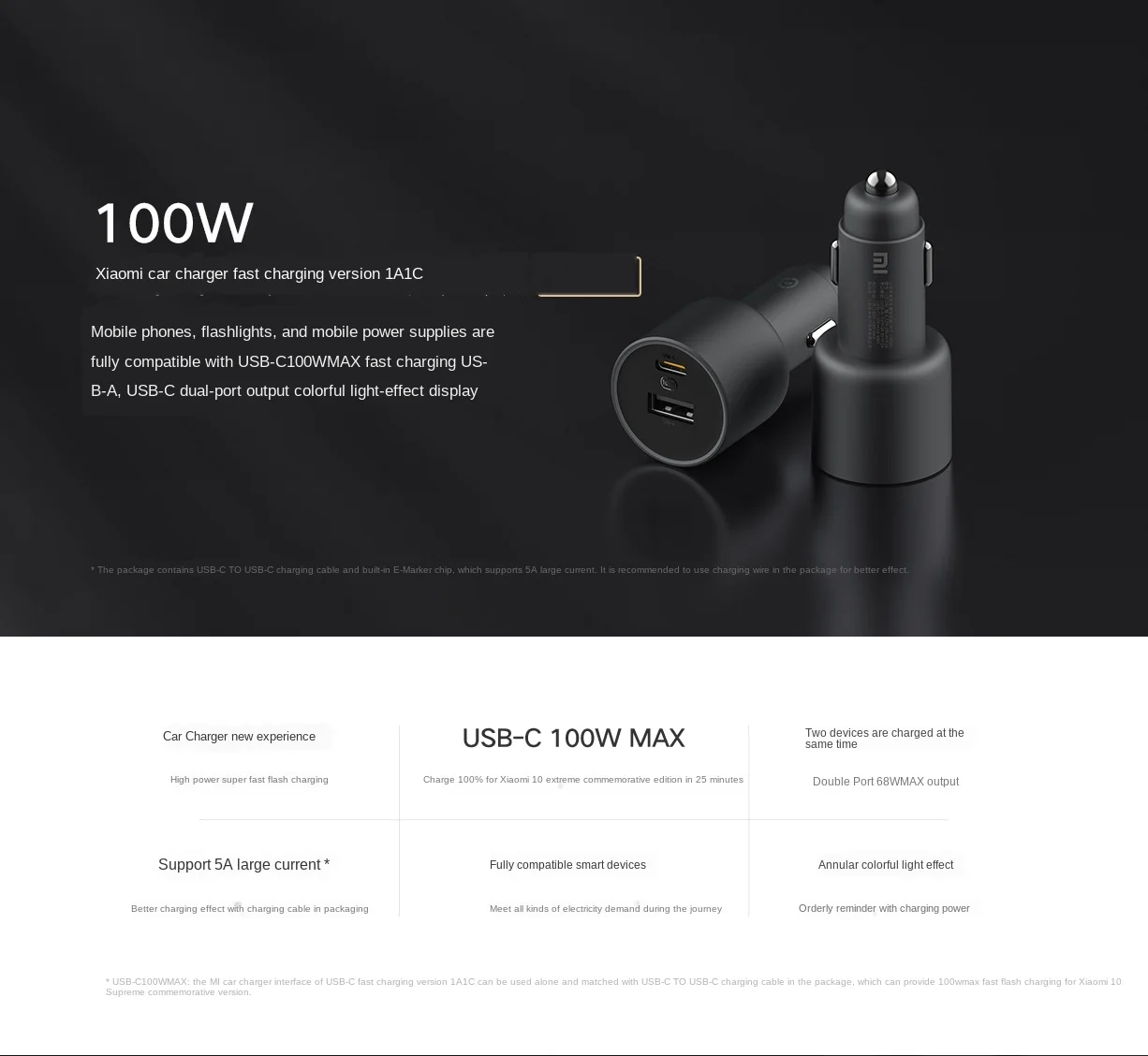 Xiaomi Car Charger 100W Max USB-A 5V 3A Dual USB Fast Charging QC Adapter USB-C For iPhone Samsung Huawei Xiaomi 10 Smartphone