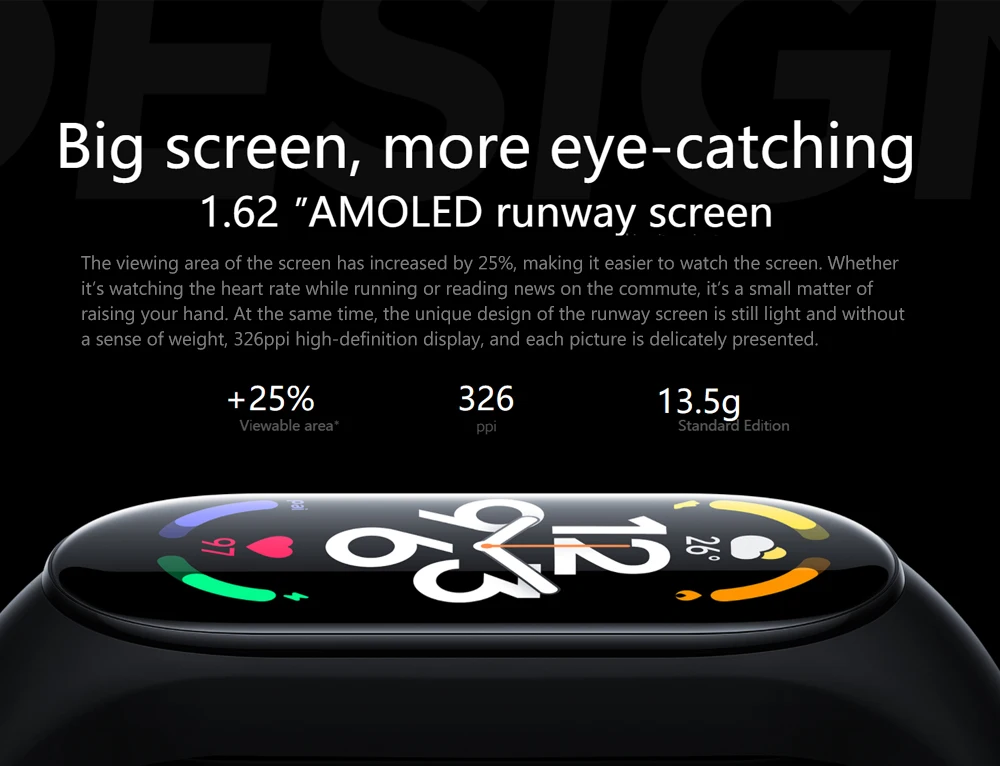 Het weergavegebied van het scherm heeft verhoogd met 25%, waardoor het makkelijker om de screen. Of het kijken de hartslag tijdens het hardlopen of lezen nieuws op de pendelen, het is een kleine kwestie van verhogen van uw hand. Tegelijkertijd, het unieke ontwerp van de landingsbaan scherm is nog licht en zonder een gevoel van gewicht, 326ppi high-definition display, en elke foto is fijn gepresenteerd.