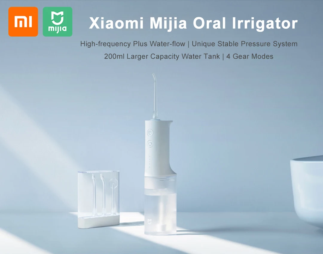 Original Xiaomi Mijia Electric Oral Irrigator Dental Tooth Punch High Frequency Pulsed 4 Gear Mode 200ml Capacity with 4 Nozzles