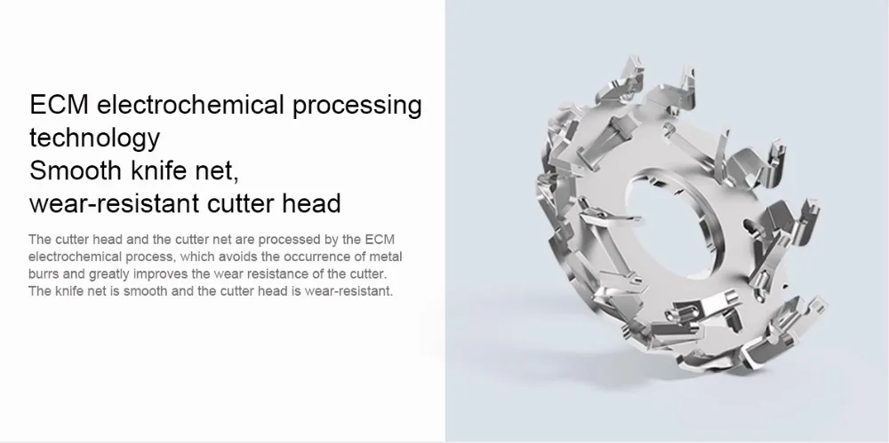 The cutter head and the cutter net are processed by the ECM electrochemical process, which avoids the occurrence of metal burrs and greatly improves the wear resistance of the cutter. The knife net is smooth and the cutter head is wear-resistant.