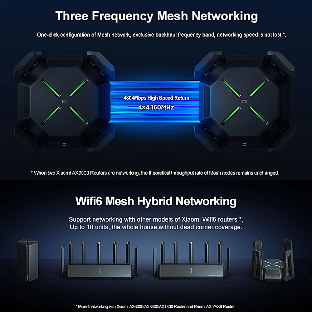 Xiaomi Router AX9000 2.4G/5G/5G-Game 3 Channels WiFi 6 Enhanced Version 4 Core CPU 1GB RAM 4K QAM 12 High-Gain Antennas Router