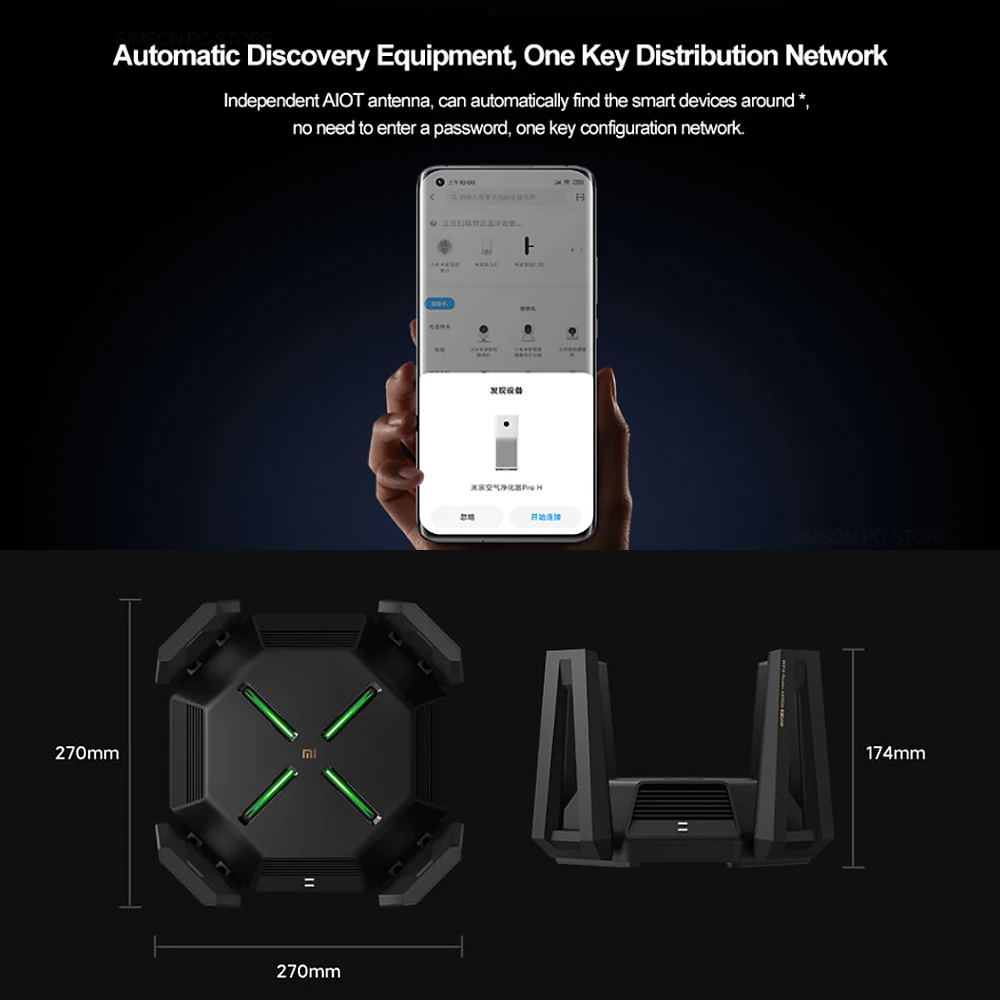 XIAOMI Router AX9000 2.4G/5G/5G-Game Three Channels WiFi 6 Enhanced Version Quad-Core CPU 1GB RAM 4K QAM 12 High-Gain Antennas Mesh E-sport Edition Gamer Router