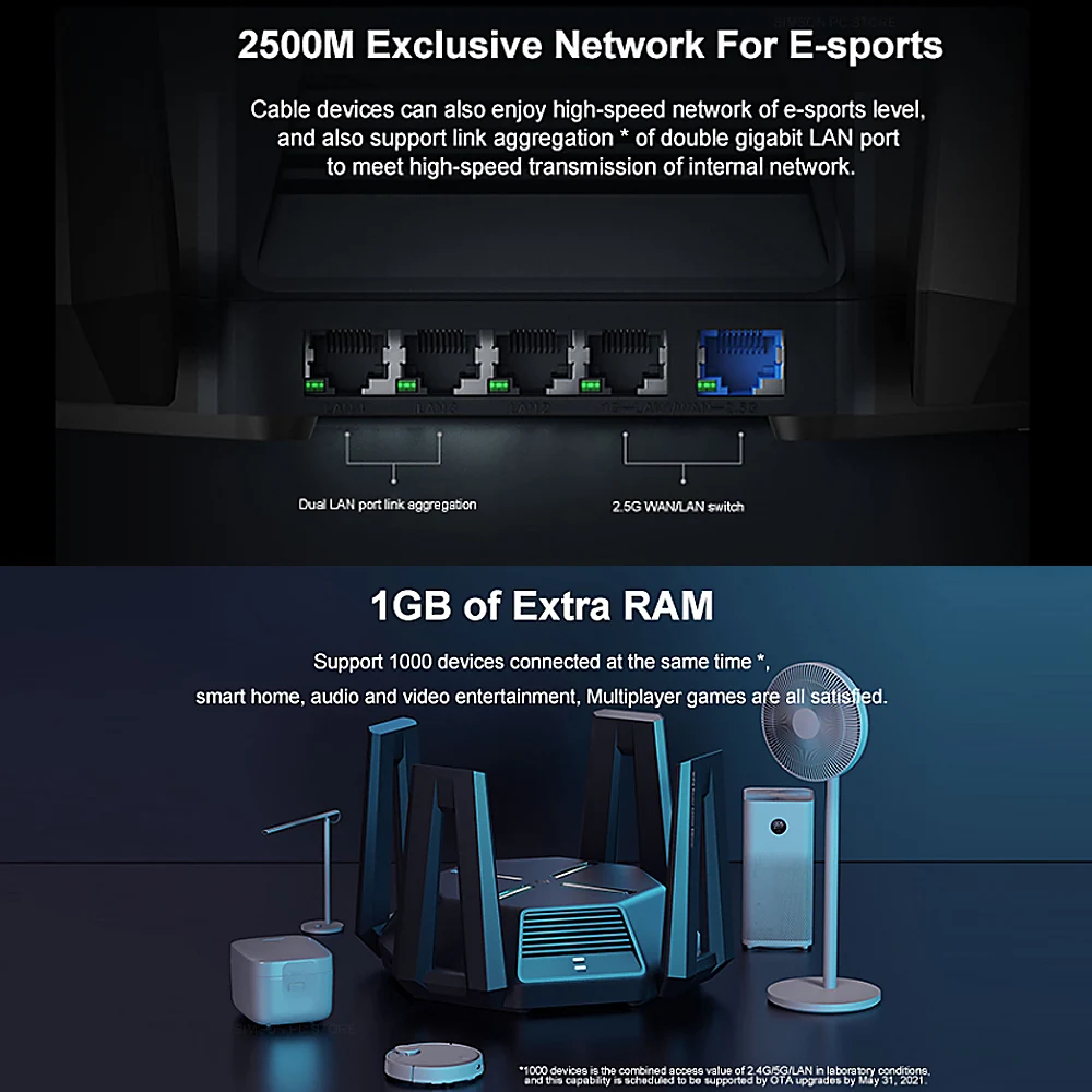-1GB of extra RAM, support 1000 devices connected at the same time.
