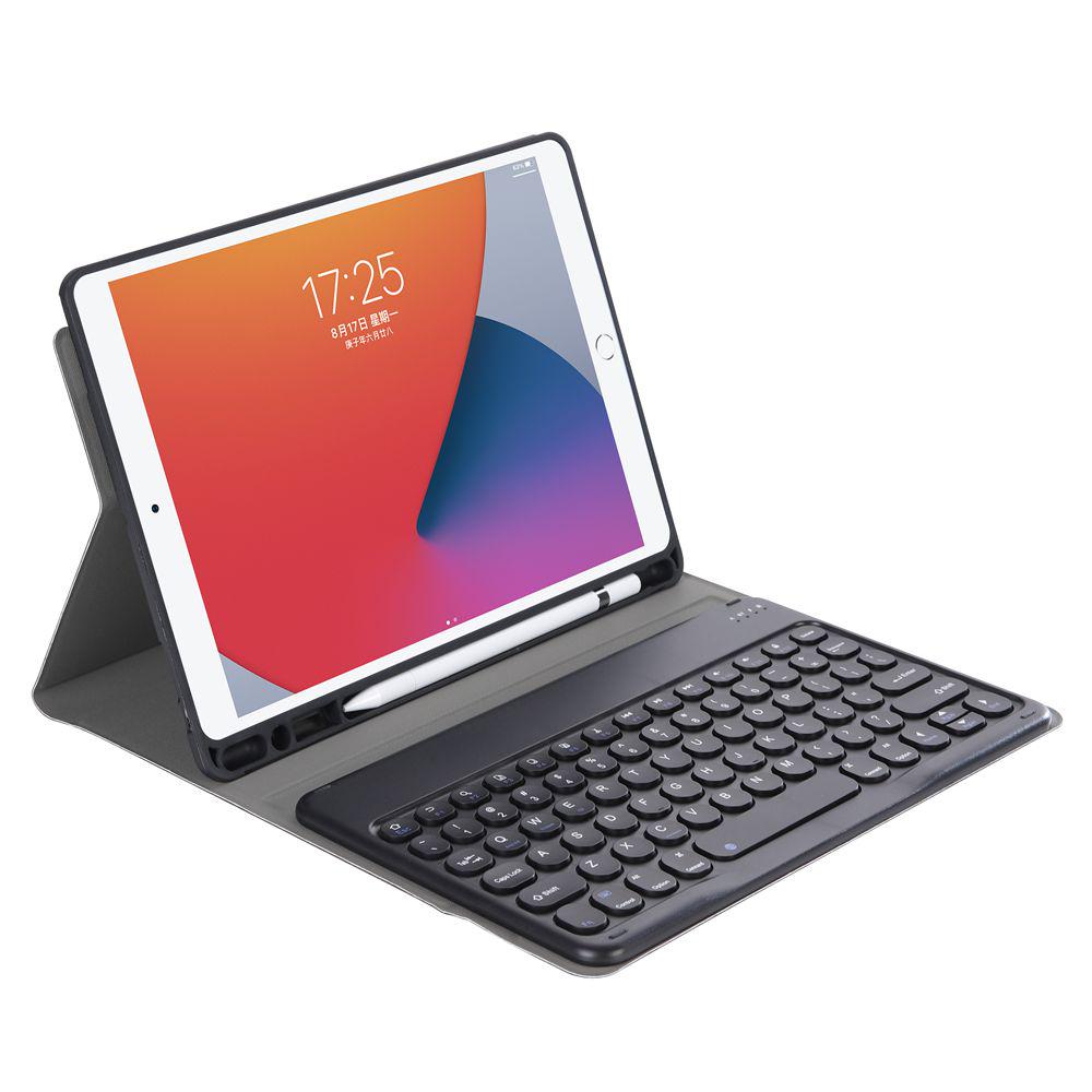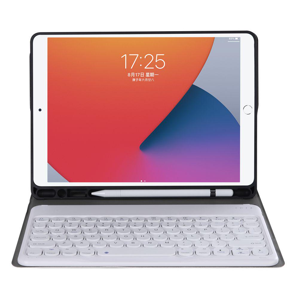 YA098B Detachable Lambskin Texture Round Keycap Bluetooth Keyboard Leather Case with Pen Slot & Stand For iPad Air 4 10.9 inch (2020) / Pro 11 inch (2020) & (2018)