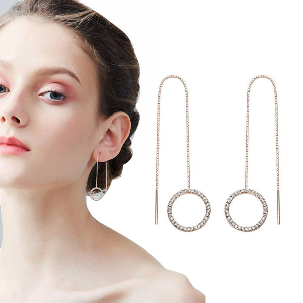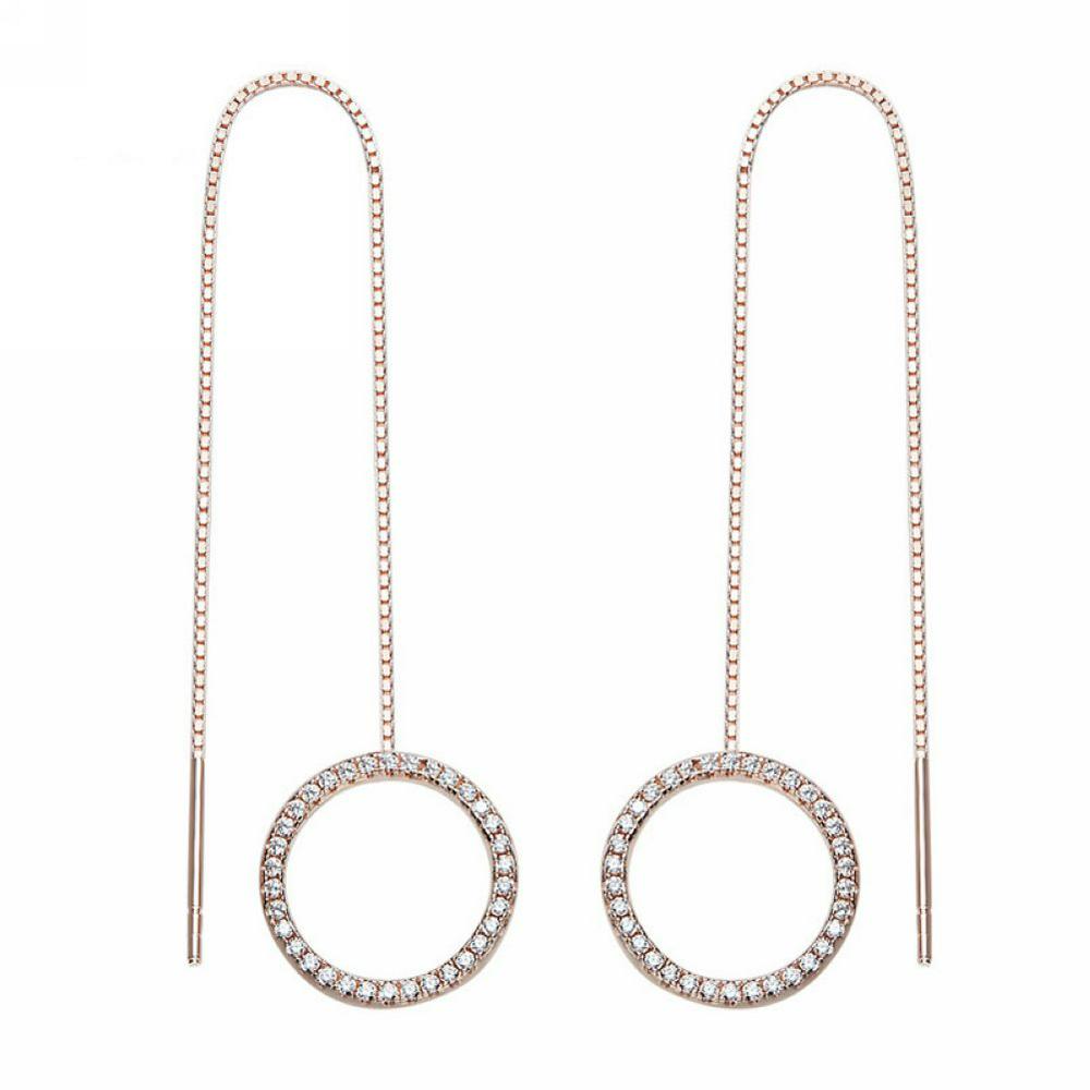 Long tassels dangle earrings, decorated with clear crystal in the end part of each snake chain