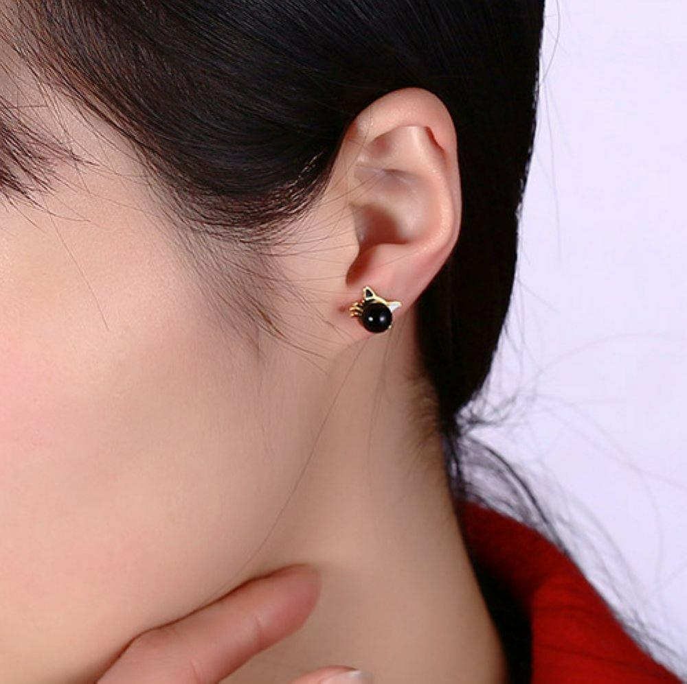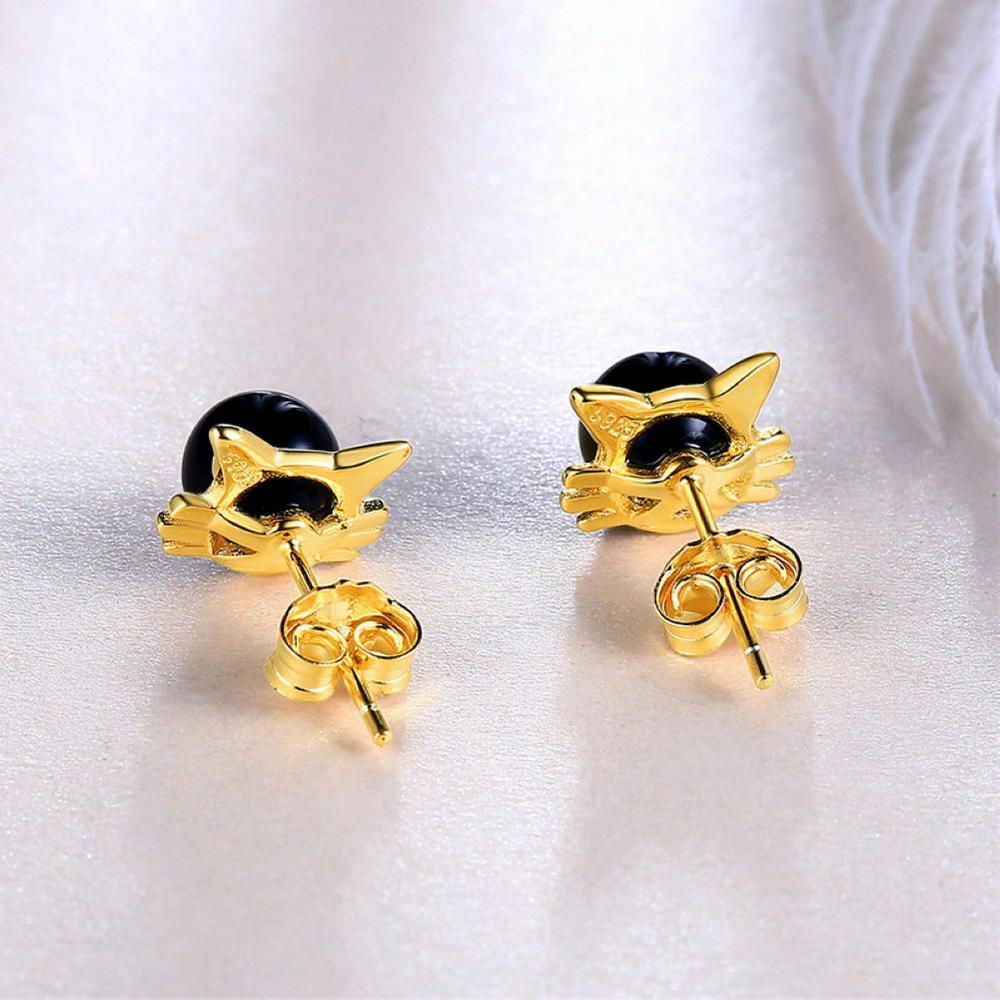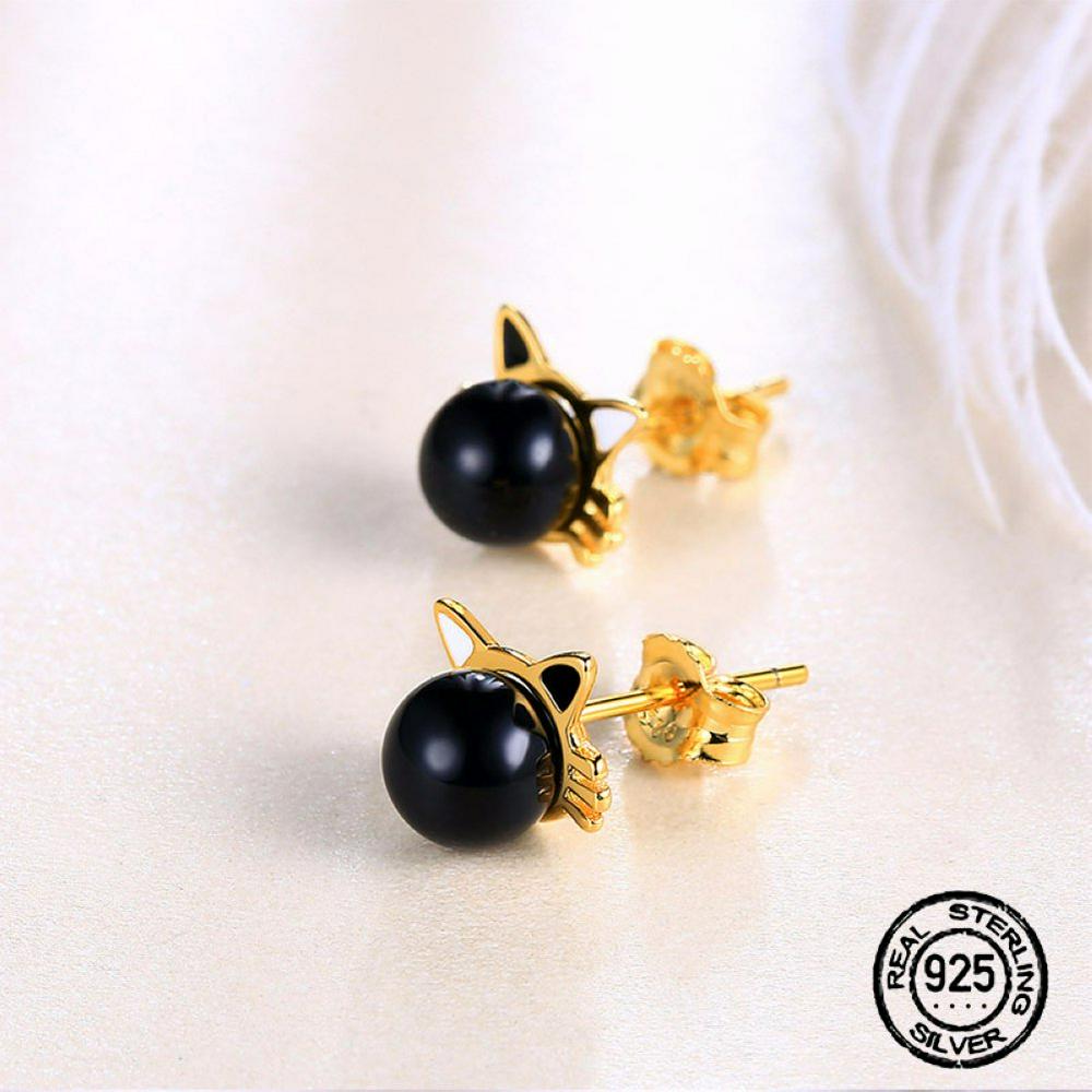 Sterling Silver Cat Earrings,Woman Fashion Pearl Cat Earrings,Silver Cat Earrings,Sweet Cute Kitten Cat Earrings for Girls,Lovely Little Cat Earrings,Black Cat Studs Earrings,Kitten Cat Earrings for Girls
