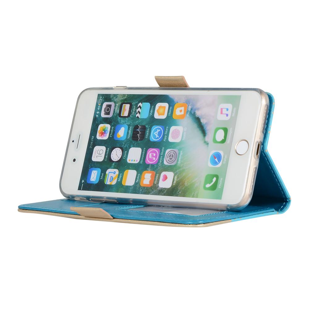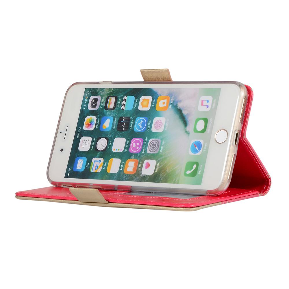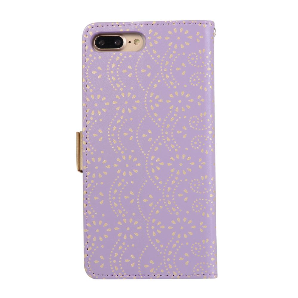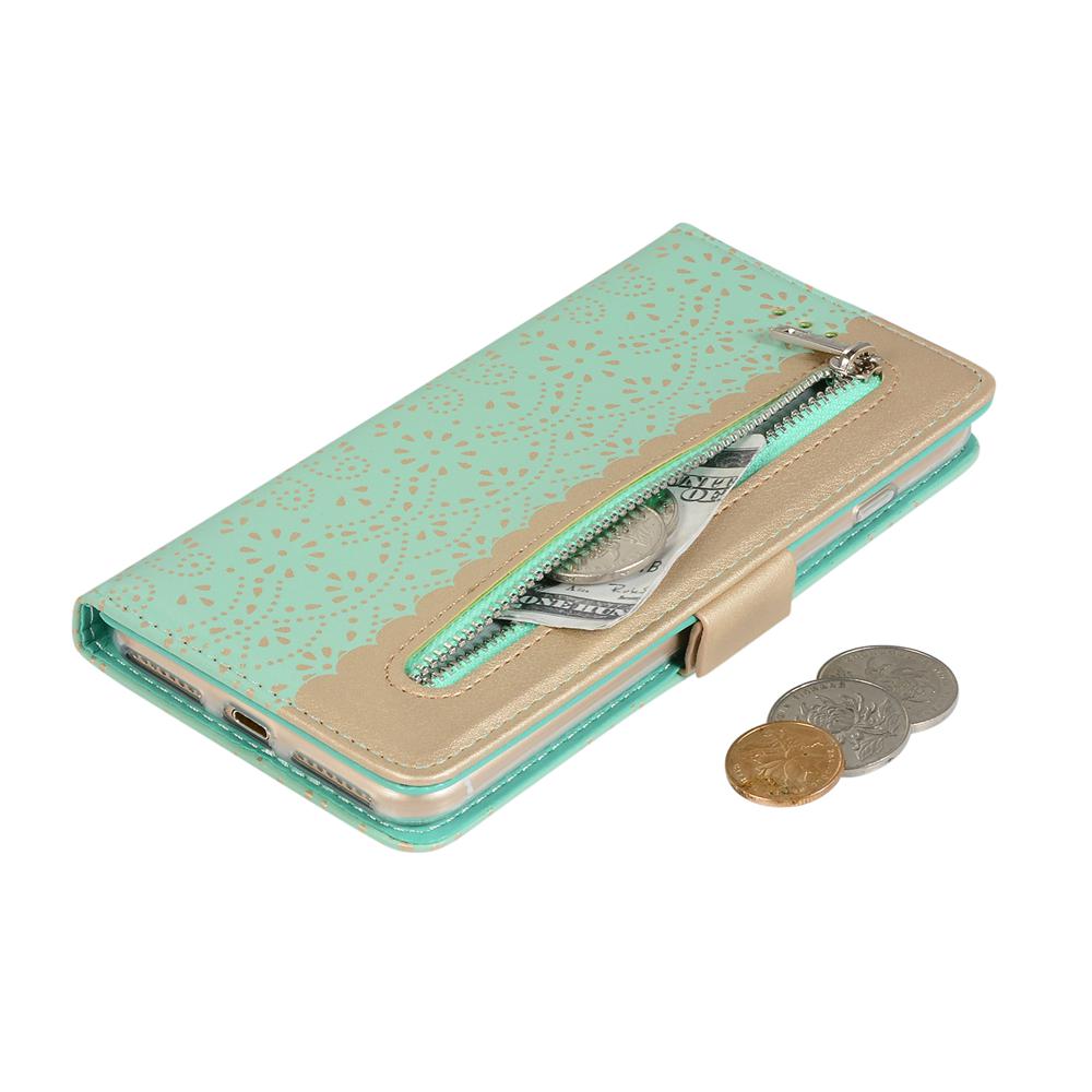 Zippered Wallet Case for iPhone 7 Plus, Patterned Leather Phone Cover with Wrist Strap