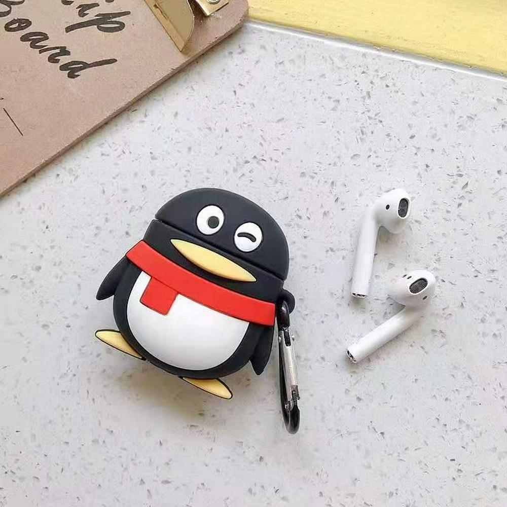 QQ Penguin Airpods Case Keychain AirPod Earbud Charging Bluetooth Earphone Protective Hard Cover Case