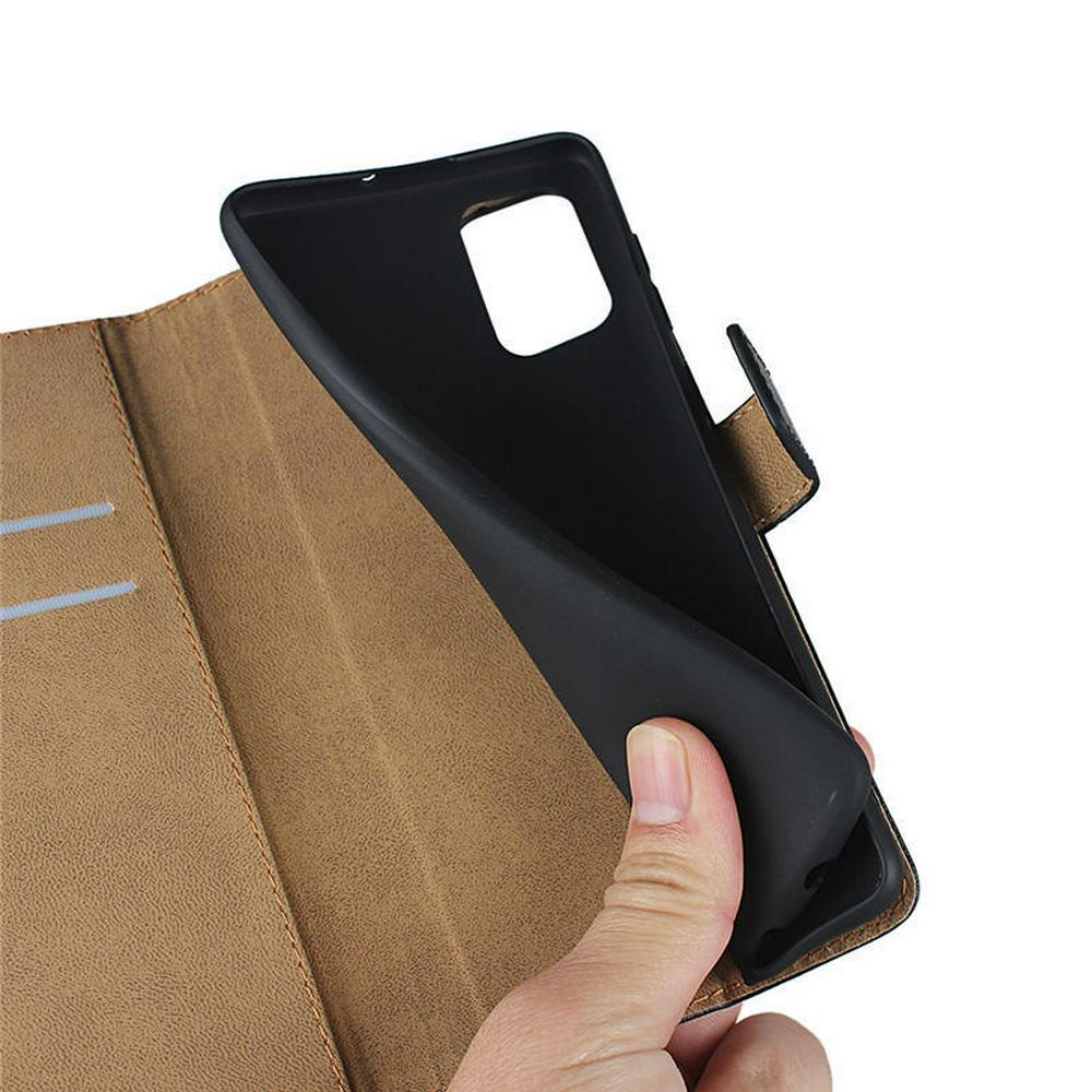 Solid Color Shockproof Side Flip Genuine Leather + Soft TPU Card Slots with Stand and Magnetic Buckle Wallet Case for Samsung Galaxy A71