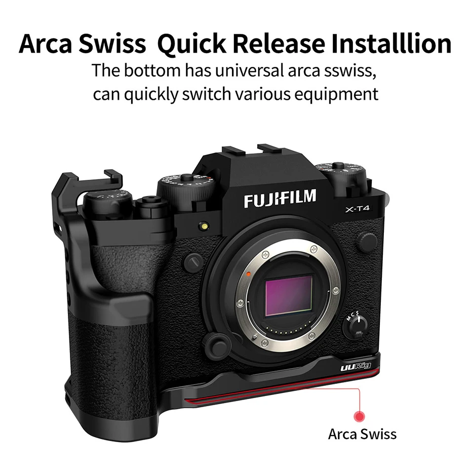 UURig R033 L-shaped metal bracket is designed for mirrorless camera, compatible with Fujifilm X-T4.