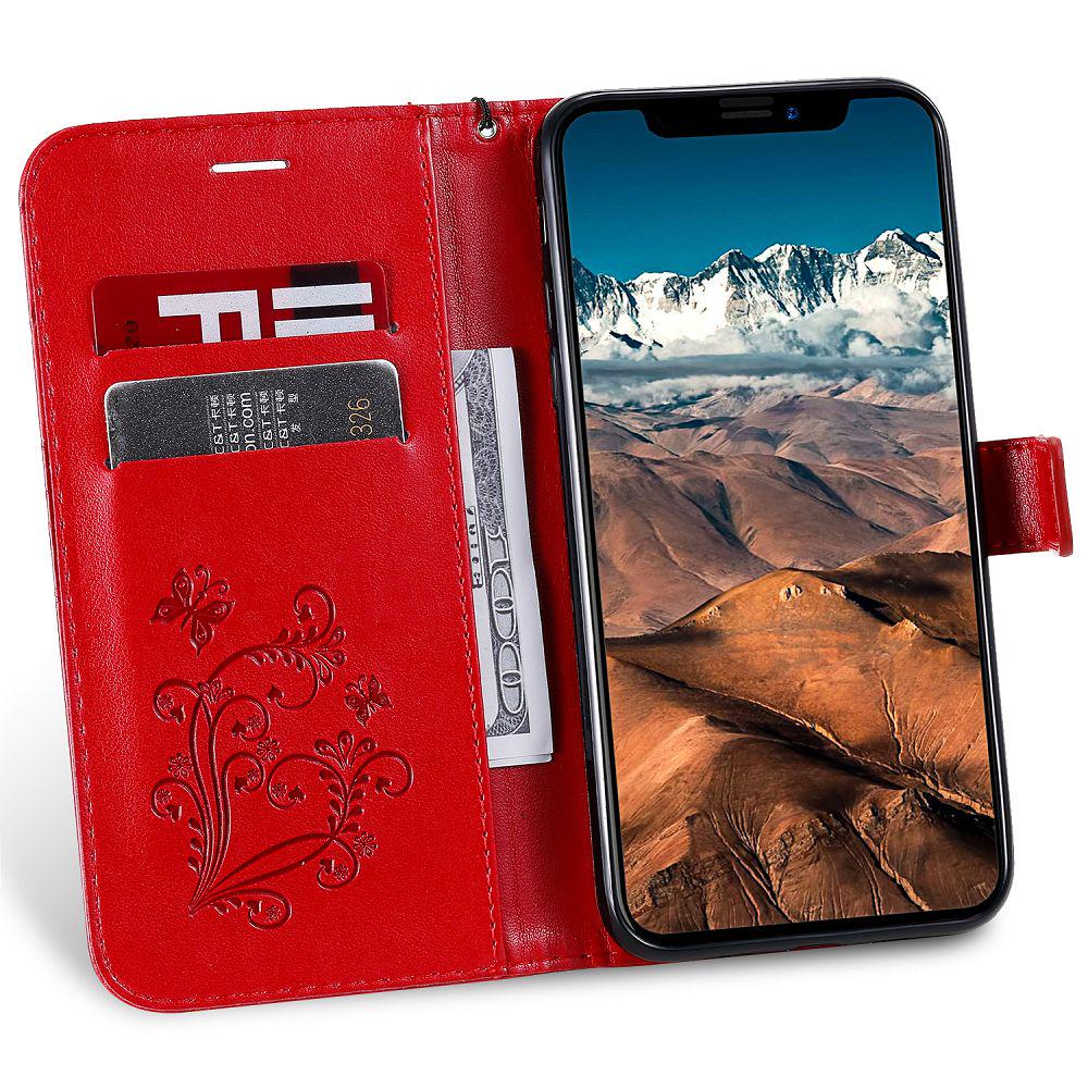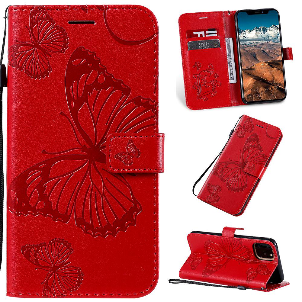 Wallet Case for iPhone 11 Pro Max, Butterfly-embossed Leather Phone Case with Wrist Strap