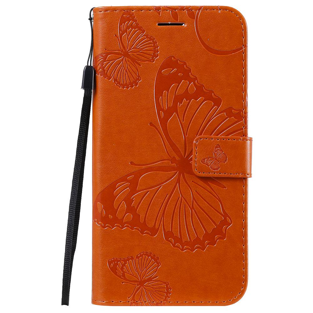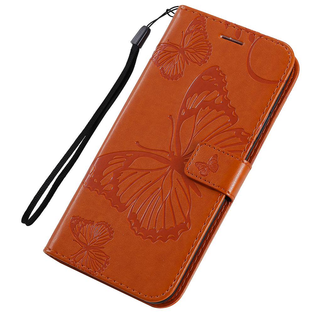Wallet Case for iPhone 11 Pro Max, Butterfly-embossed Leather Phone Case with Wrist Strap