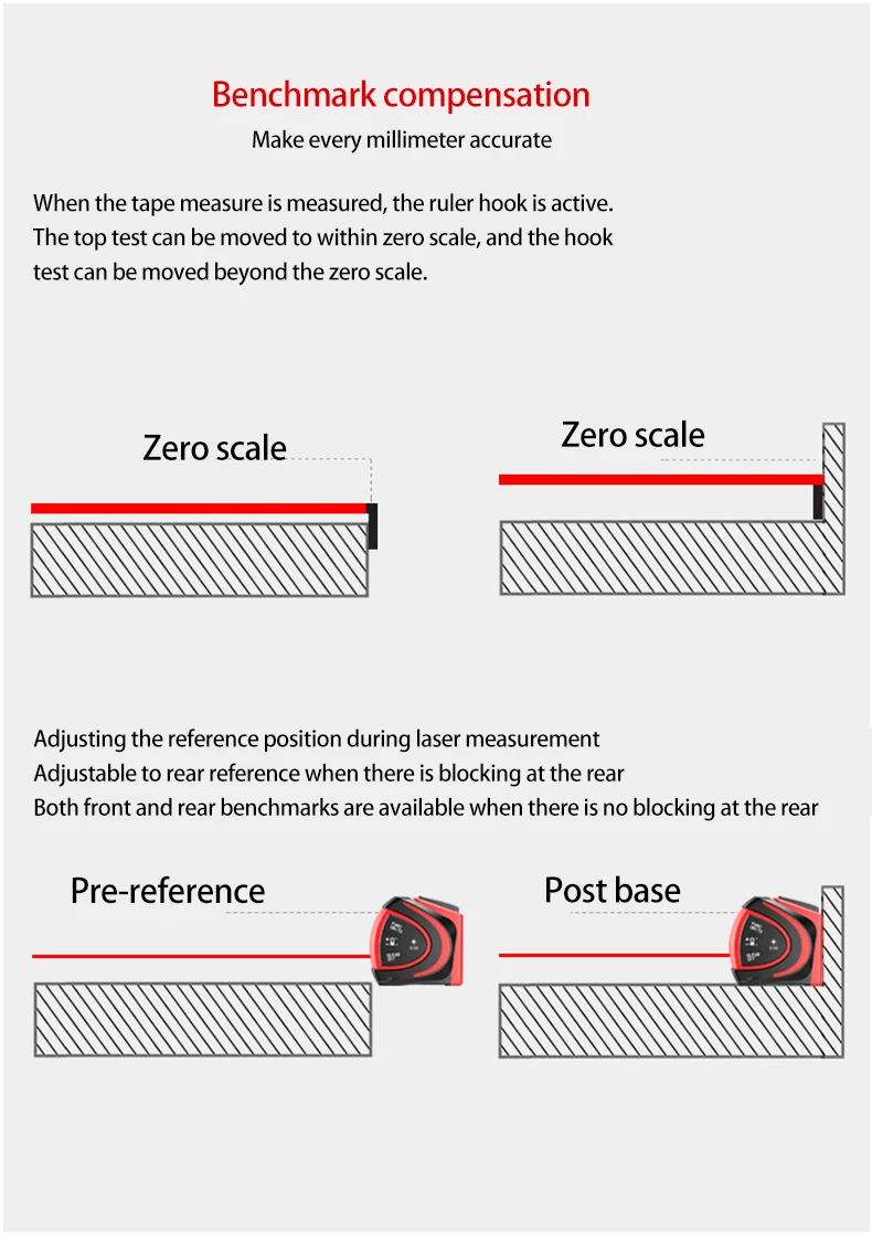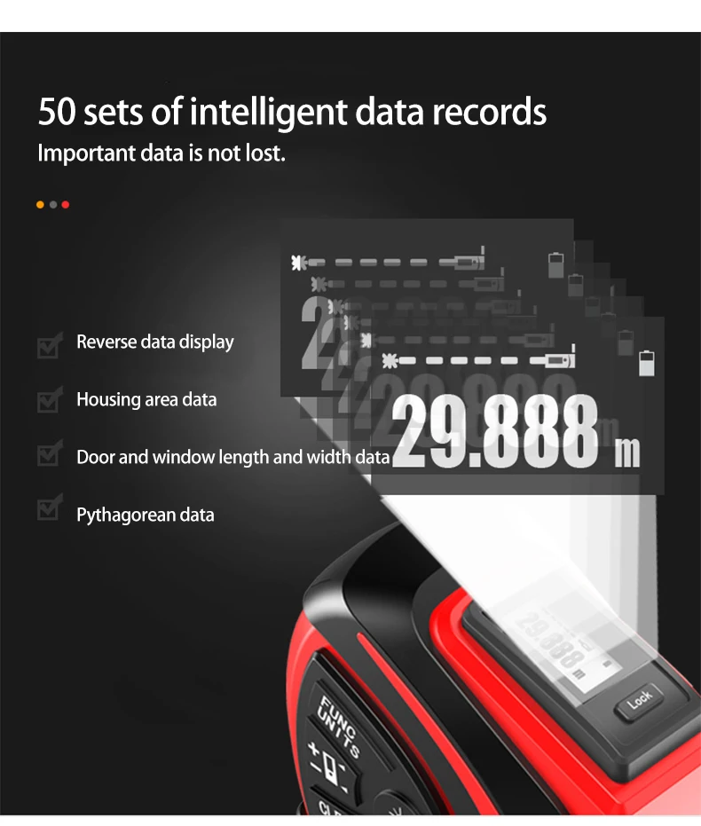 Adopped the advanced measure chip and technology, datum switched control the error within 1/16 inch. The ability of storage memory provide your with 50 groups date to refer so that you needn't waste time to take notes.